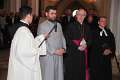 Wien, 29.05.2015 CSI-Schweigemarsch mit Kardinal Schönborn und Metropolit Arsenios Der Marsch als Ausdruck der Solidarität für verfolgte Christen mit Kardinal Schönborn und Metropolit Arsenios bildete den Auftakt zur "Langen Nacht der Kirchen" in Wien, bei welcher heuer die Christenverfolgung in Syrien, Irak, Nigeria, sowie der Genozid an den Armeniern Schwerpunkt war. Der Marsch startete am Stephansplatz, angeführt von Kardinal Christoph Schönborn, Metropolit Arsenios Kardamakis, Weihbischof Franz Scharl, Bischofsvikar Dariuz Schutzki, dem griechisch-katholischen Generalvikar Yuriy Kolasa, dem armenisch-apostolischen Patriarchaldelegaten P. Tiran Petrossian und weiteren Spitzenrepräsentanten der christlichen Kirchen, und endete bei der Augustinerkirche. Auf zahlreichen Transparenten, die u.a von CSI, dem Organisator des Marsches, sowie von orthodoxen Gemeinden in Wien getragen wurden, wurde das "Menschenrecht auf Religionsfreiheit" und "Christenverfolgung sofort stoppen" gefordert. Das Vaterunser wurde auf griechisch, armenisch, aramäisch (der Sprache Jesu) und auf deutsch gebetet. "Wir beten für die verfolgten Christen, aber wir beten auch -so wie es Christus vorgelebt hat- für die Verfolger", sagte der Kardinal vor dem Stephansdom. "Sie meinen im Namen der Religion zu handeln, obwohl alles was sie tun der Religion widerspricht." Er erinnerte an die "beeindruckende Glaubenstreue" der koptischen Märtyrer, die auf den erschütternden Videos ihrer Ermordung in Lybien sichtbar geworden sei. Die Metropoliten von Aleppo, Mar Gregorios Youhanna Ibrahim und Boulos Yazigi, die er kurz vor ihrer Entführung in Wien getroffen hatte, sind nach zwei Jahren immer noch spurlos verschwunden. Sie waren sich der Gefahr bewußt, trotzdem sind sie als gute Hirten nach Syrien zurückgekehrt. Vor der Dreifaltigkeitssäule am Graben und auf dem Josephsplatz wurden Stationen gemacht, bei welchen CSI-Generalsekretär Elmar Kuhn an das Glaubenszeugnis der 21 koptischen und der 28 äthiopischen Christen, die von IS-Terroristen abgeschlachtet wurden, erinnerte: "Wir wünschen uns von den Muslimen in Europa, dass auch sie gegen das Islamverständnis des IS auf die Straße gehen". Beim abschließenden ökumenischen Gottesdienst des Schweigemarsches in der Augustinerkirche wurde am neuen Altar für die verfolgten Christen ein Triptychon des nigerianischen Künstlers Samuel Palmtree mit Szenen von Golgotha von den hohen Würdenträgern gesegnet. Es zeigt in eindrucksvollen Bildkompositionen das Leid der entführten, inhaftierten, gelynchten und gefolterten Christen in Afrika. Zugleich macht es auch die Weigerung der Gläubigen deutlich, den gekreuzigten Christus zu verleugnen, selbst wenn dies lebensrettend wäre. Pfarrer P. Matthias Schlögl verwies auf das Wort von Papst Franziskus von der "Ökumene des Blutes", dem gemeinsamen Zeugnis der christlichen Märtyrer unterschiedlicher Konfession. |