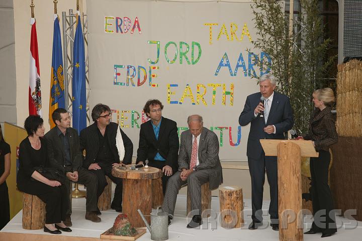 | Vlnr.: Künstlerin Monika Karlinger und Mitglieder der Architektengruppe 'GUT' im Gespräch mit Bgm. Heuras. | 07.04.27 122 |