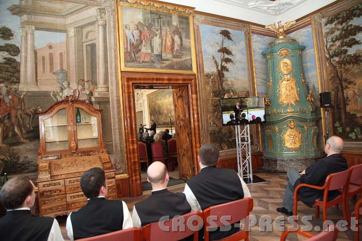 Kamera: Canon EOS 5D Mark II | Objektiv: EF24-105mm f/4L IS USM | Auflösung: 5616 x 3744 | ISO-Einstellung: 3200 | Belichtungsmodus: Shutter priority | Belichtungskorrektur: 0 EV | Belichtungszeit: 1/90s | Blendenöffnung: 5.6 | Brennweite: 24,0mm | Weißabgleich: Auto white balance | Blitz: Flash fired | Überschrift: Internationale Fachtagung "Macht Glaube Politik?" | Autor: Gabi & Jerko Malinar | Ortsangaben: Stift | Ort: Heiligenkreuz | Bundesstaat: NOE | Land: Austria | Copyright: Gabi & Jerko Malinar | Karte anzeigen
